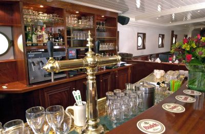 Sotto ponte si trovano la sala ristorante e l’area relax e sul ponte ci sono un bar e una vasca idromassaggio esterna per rilassarsi a fine giornata. Vedi la barca in dettaglio
