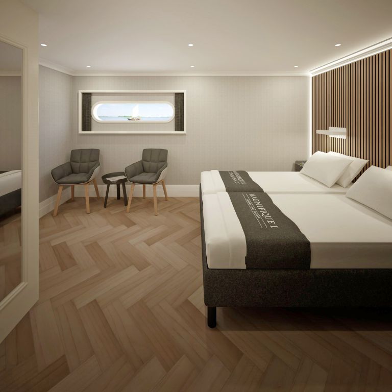 Magnifique I è una barca di recente costruzione, completamente rinnovata nel 2023, che offre ai suoi ospiti il massimo del comfort. Grazie alle dimensioni contenute, può agilmente navigare sui canali più piccoli e ormeggiare nel cuore delle città.