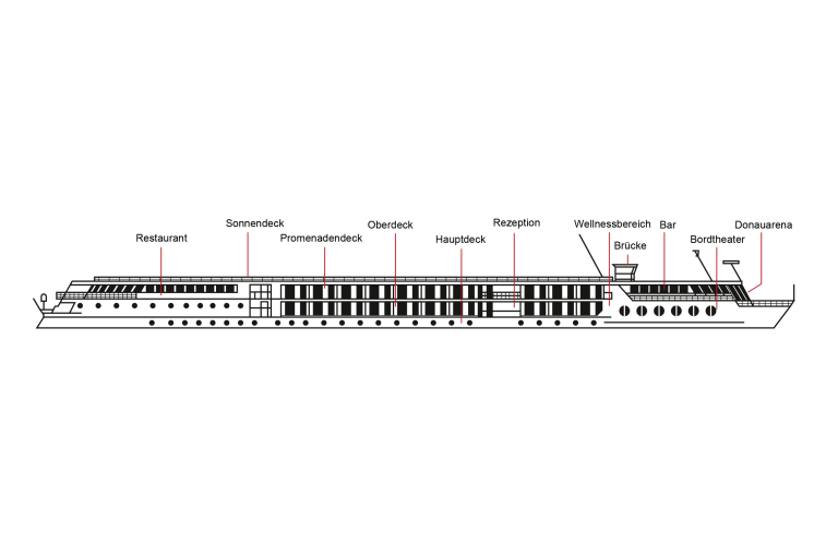 La Primadonna è stata costruita nel 1998 e ristrutturata del 2009. L’interessante struttura a catamarano, le vetrate di 6 m di altezza, il pavimento di vetro alla reception e la hall lunga ben 60 metri, fanno della Primadonna un vero e proprio hotel 4* sull’acqua. Sul ponte sole sono a disposizione degli ospiti un piccolo idromassaggio e le sedie sdraio. La zona wellness comprende un idromassaggio, vasche per il percorso Kneipp e una sauna. Vedi la barca in dettaglio