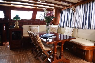 Thalassa è uno yacht a motore a tre alberi costruito nel 2002 come un tradizionale caicco turco. Una nave con le migliori attrezzature, che unisce l’eleganza ad un grande comfort.