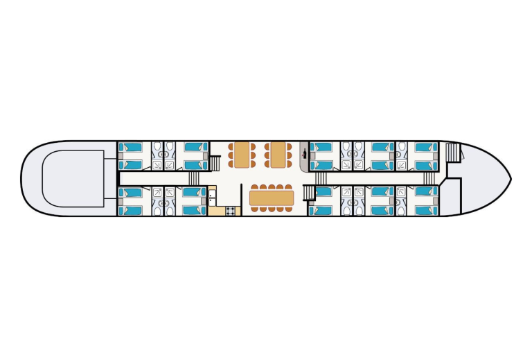 Il pernottamento è previsto a bordo di un piccolo e accogliente battello fluviale, dove spazi comuni e cabine sono studiati per far sentire gli ospiti come a casa. Un vero e proprio hotel galleggiante con sala ristorante e ampio ponte per i momenti di relax durante la navigazione.