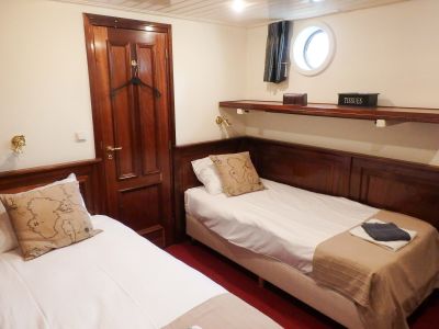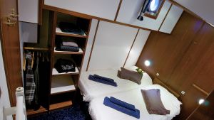 Tutte le cabine misurano 11-13 mq, hanno due letti separati che possono essere uniti per formare un letto unico, e 4 cabine hanno anche un letto pieghevole per una terza persona in cabina.